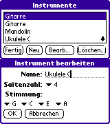 Sie können auch Ihre eigenen Instrumente definieren, indem Sie die Anzahl der Saiten und die Standard-Stimmung vorgeben.